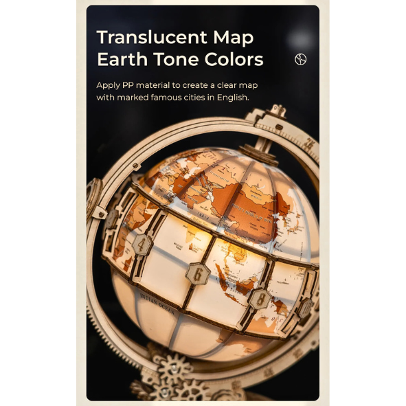 Antique Look LED World Globe Mechanical Table Lamp DIY Wooden Puzzle