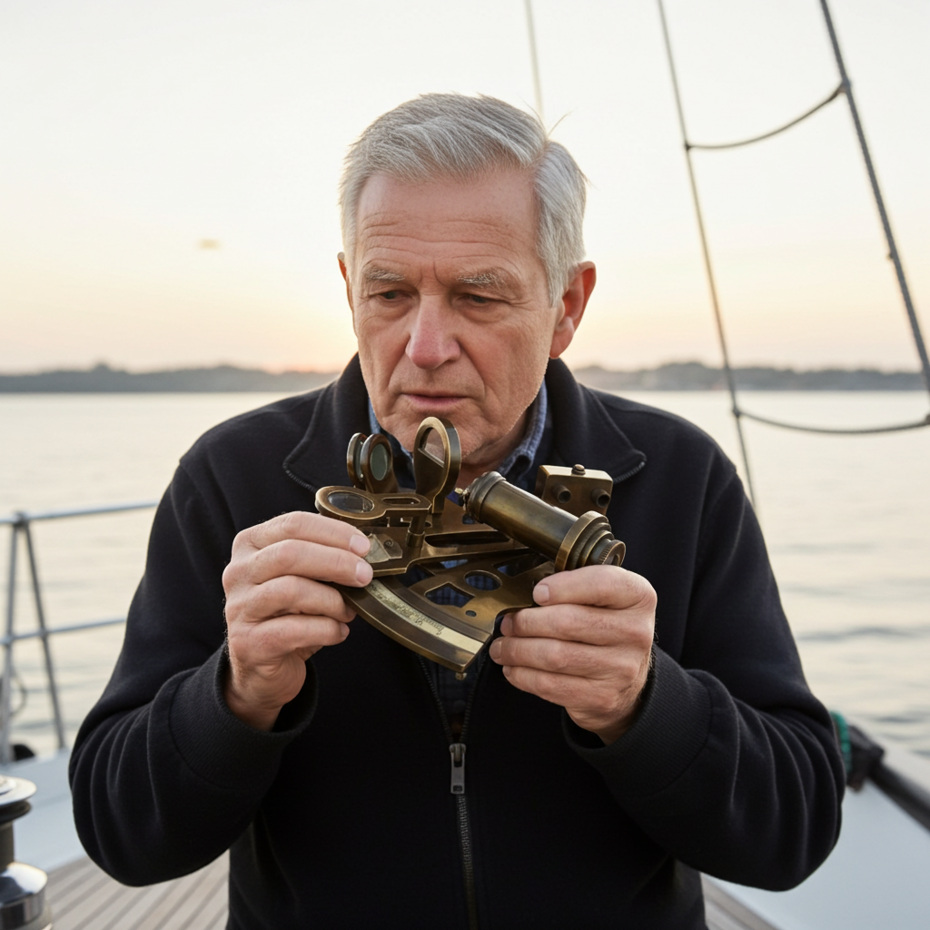 A sextant is a doubly reflecting navigation instrument that measures the angular distance between two visible objects most often to find a position between the sun and the horizon. Obtaining this angle is called "taking a sight" If the sun is directly overhead, the sextant measures the angle from the horizon up to the sun. In this case, the angle would be 90 degrees.