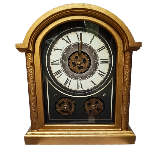 Steampunk Cogs and Wheels Mechanical Gold Mantle Clock